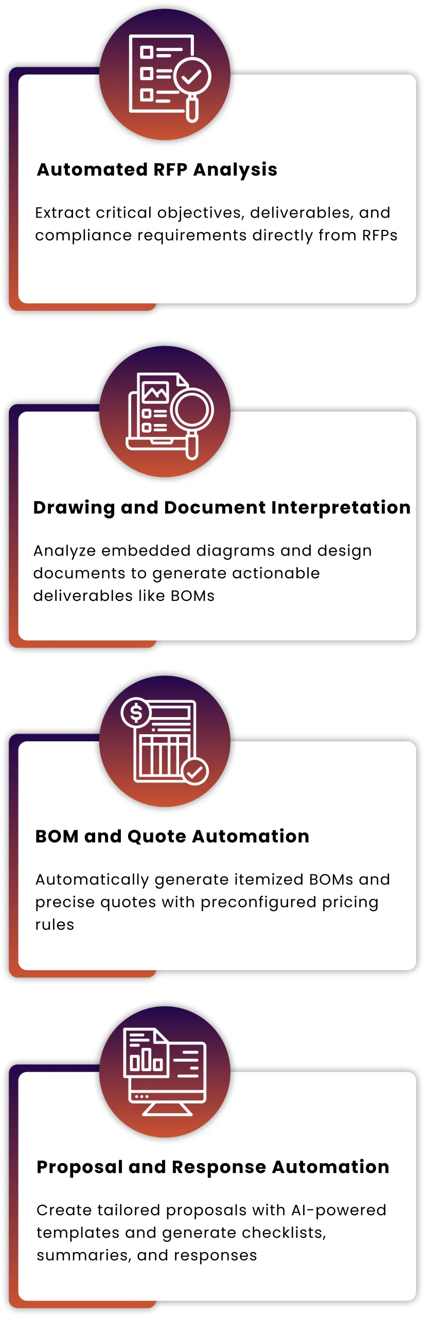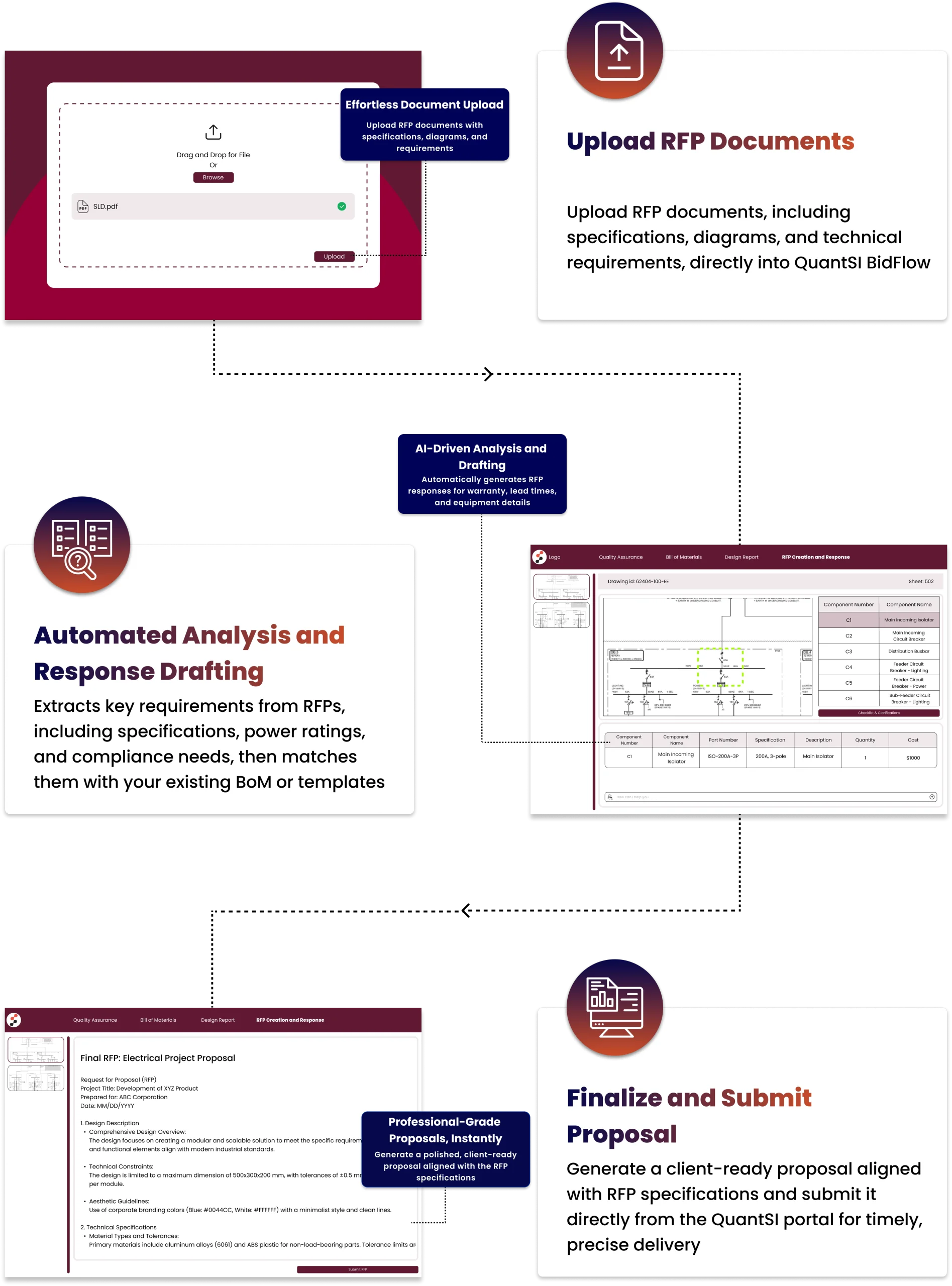 BidFlow automates RFP processing for electrical engineers, bid managers, and sales teams—extracting key data, interpreting drawings, generating BOMs, and creating proposals in minutes. This reduces manual effort, minimizes errors, and ensures compliance.